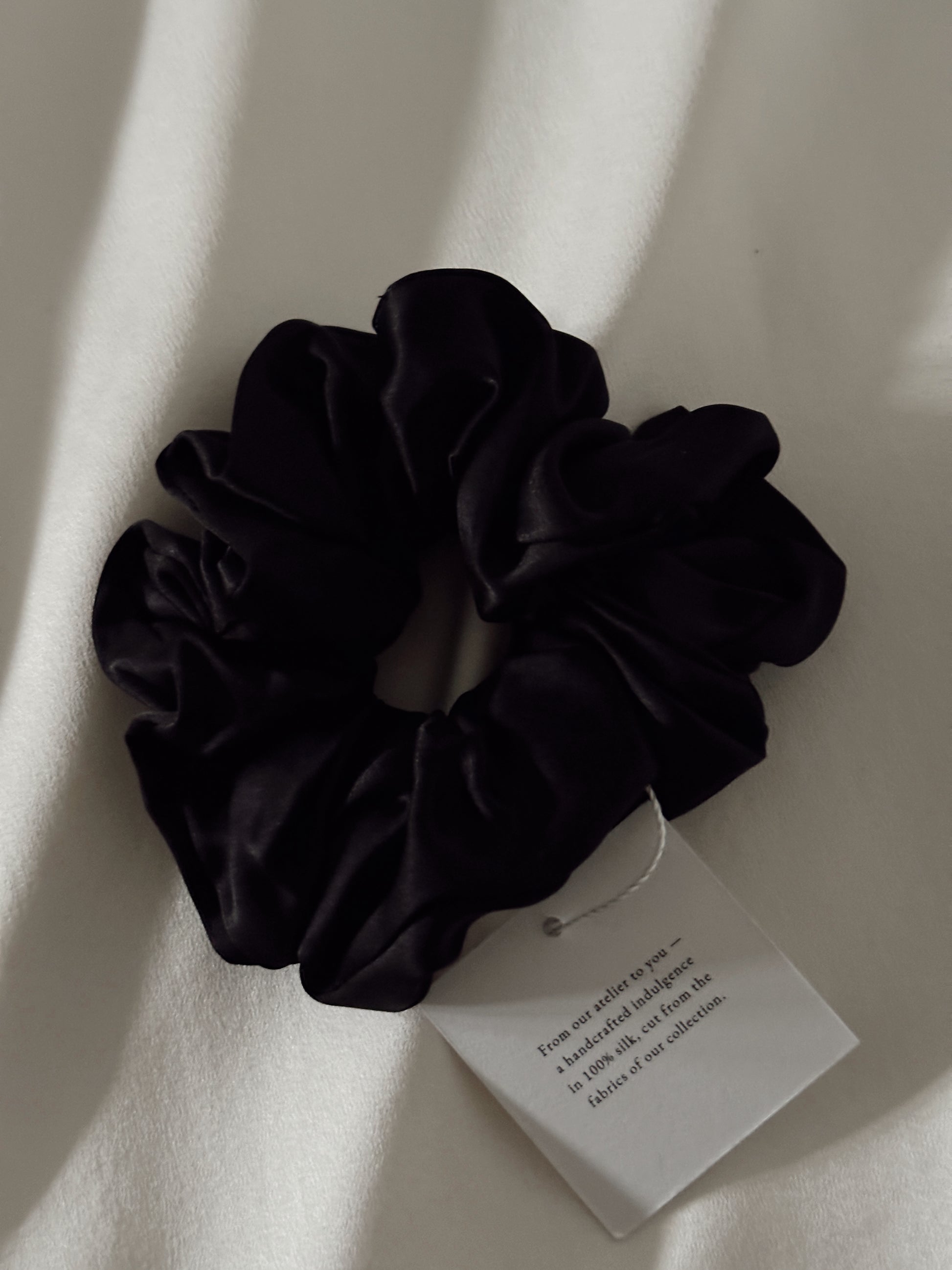 A timeless essential, our silk scrunchie is crafted from 100% pure silk—gentle on hair to prevent breakage, frizz, and creases. Designed for everyday wear and beloved by those who like to wear their hair up while they sleep.